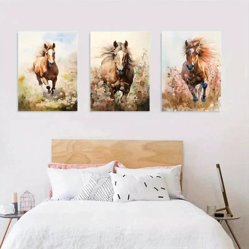 3pcs Watercolor Horse Vibrant Animal Paintings Metal Print Ready to Hang Art