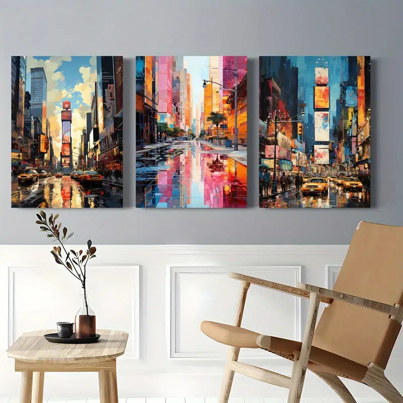 3pcs Watercolor New York City Times Square Metal Print Ready to Hang Art