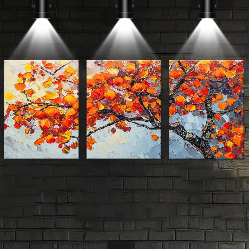 3pcs Watercolor Orange Tree of Life Painting Metal Print Ready to Hang Art