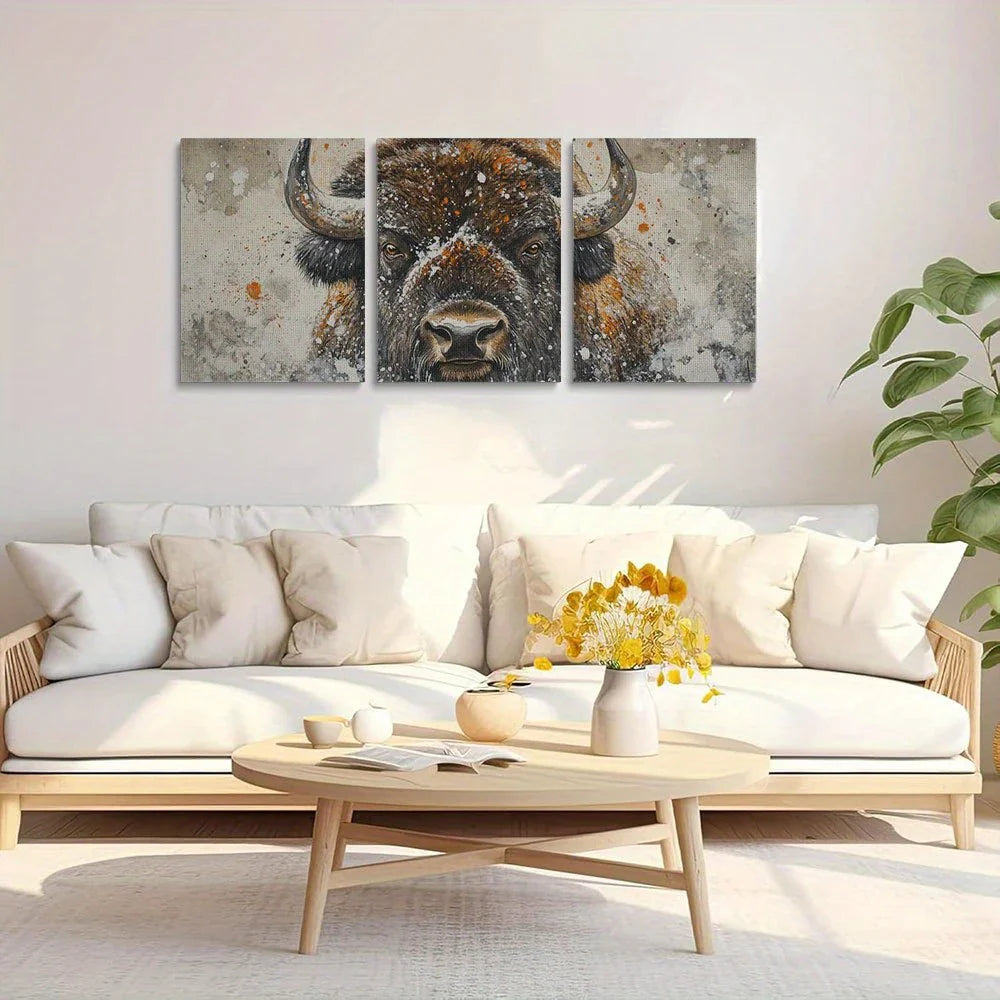 3pcs Watercolor Painting of an Angry Bison Metal Print Ready to Hang Art