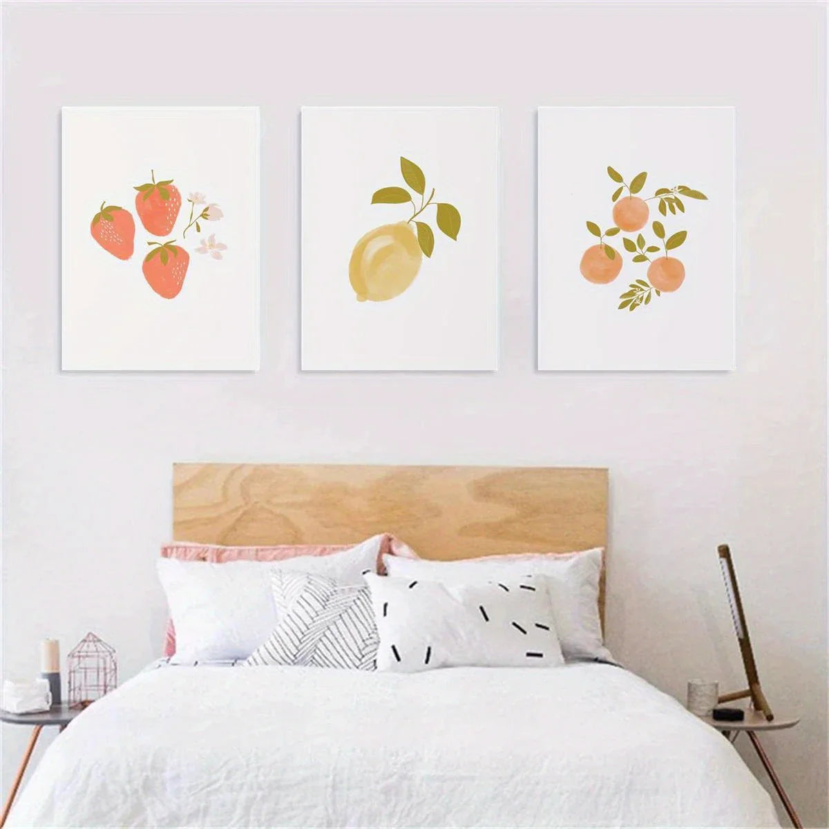 3pcs Watercolor Strawberry, Pear, Apple Classic Design Metal Print Ready to Hang Art