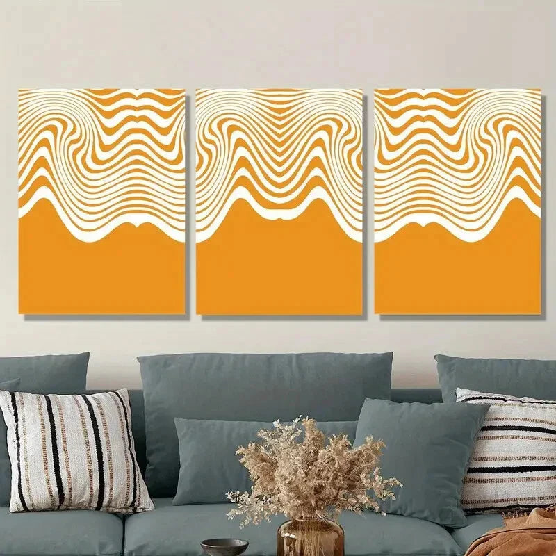 3pcs wavy seamless pattern with flowing Metal Print Ready to Hang Art