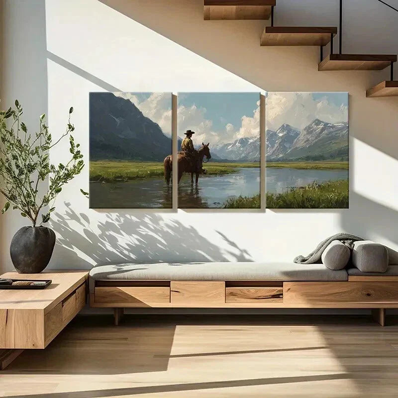 3pcs Western Cowboy Riding Horse Mountain LandscapeMetal Print Ready to Hang Art