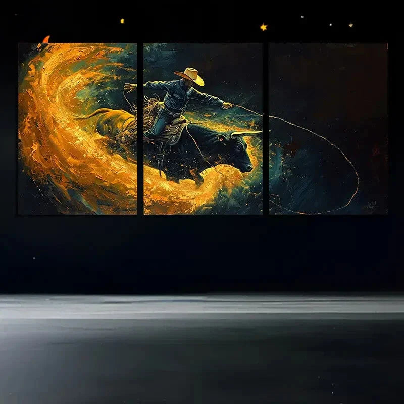 3pcs Western Cowboy Rodeo Yellow Black Metal Print Ready to Hang Art