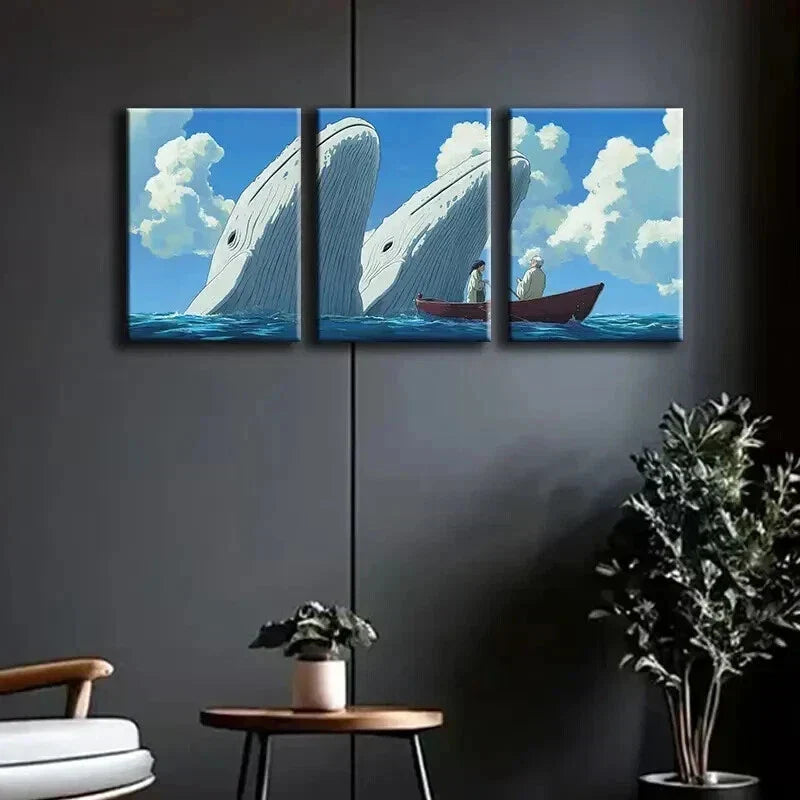 3pcs Whale and the Boy Blue Sky Nature Perfect Wall Art Set Canvas Framed 40x60cm - High Quality Print 100% Australian Made Wall Canvas Ready to Hang