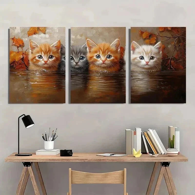3pcs Whimsical Adorable Kitten in Water Wall Art Set Canvas Framed 40x60cm - High Quality Print 100% Australian Made Wall Canvas Ready to Hang