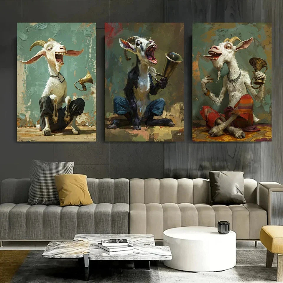 3pcs Whimsical Animal Painting Goat Metal Print Ready to Hang Art