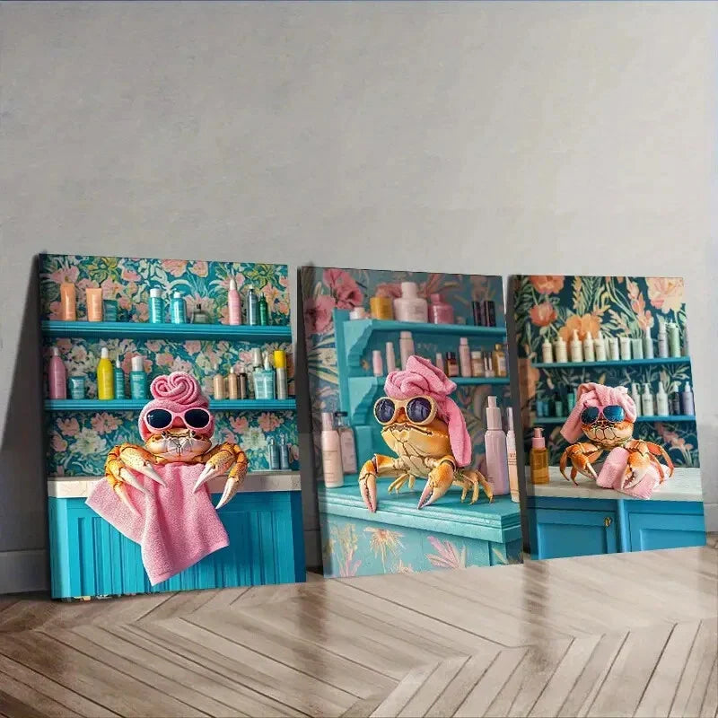 3pcs Whimsical Crab Design Tropical Vibes Wall Art Set Canvas Framed 40x60cm - High Quality Print 100% Australian Made Wall Canvas Ready to Hang