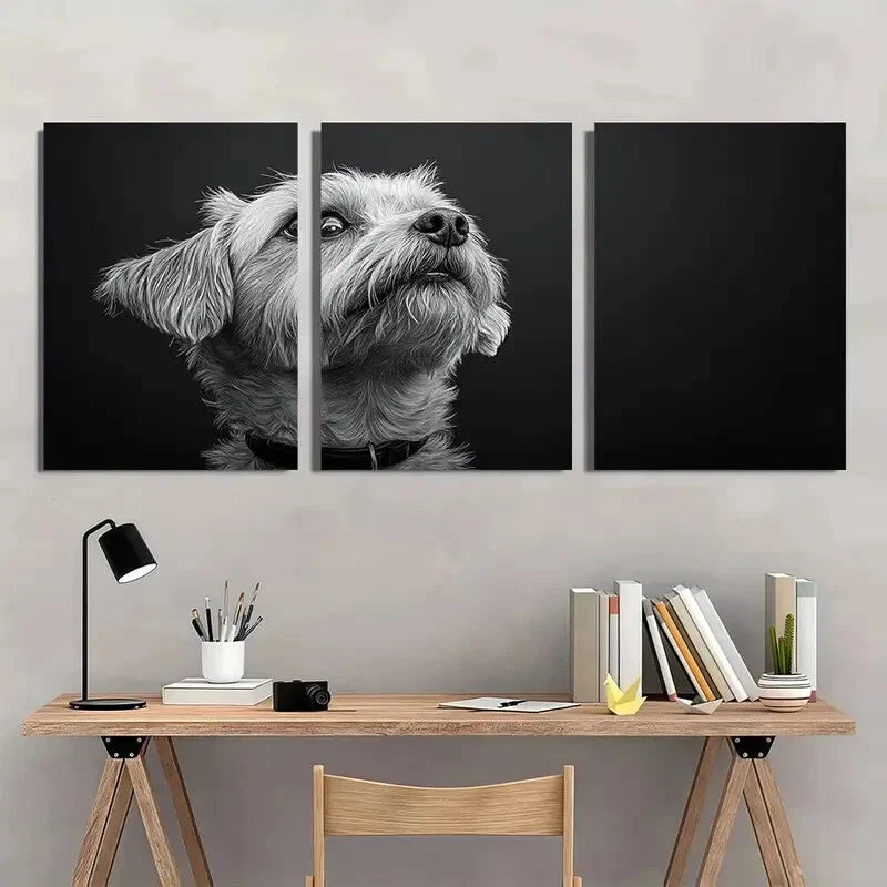 3pcs Whimsical Dog Black Doodle Style Metal Print Ready to Hang Art