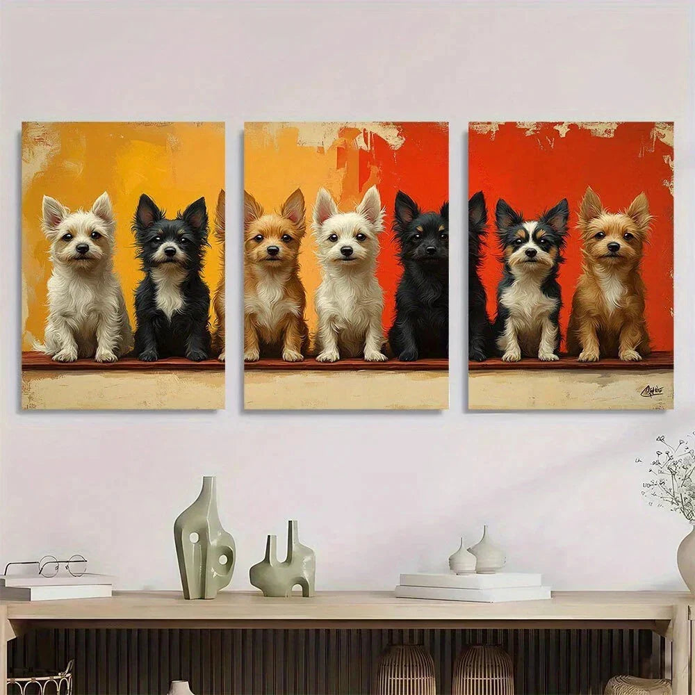 3pcs Whimsical Dogs White Black & Brown Metal Print Ready to Hang Art