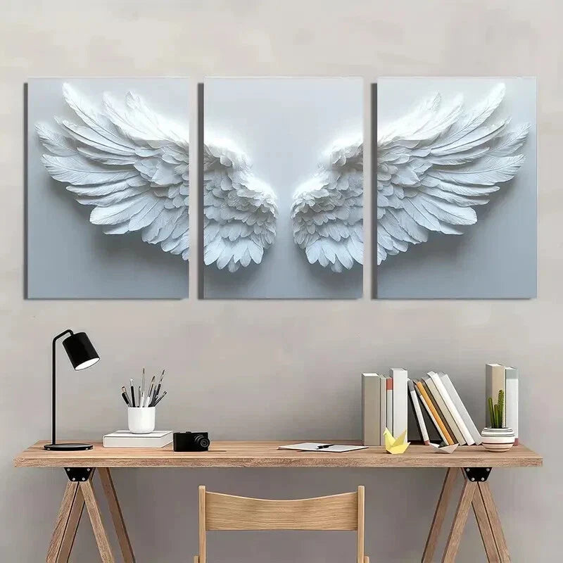 3pcs White Angel Wings Painting Metal Print Ready to Hang Art