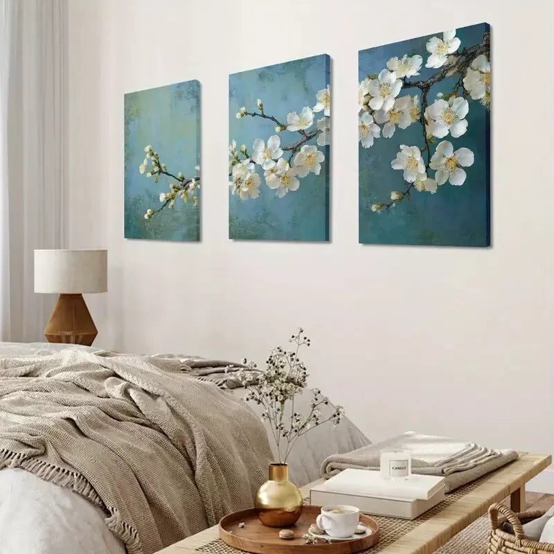 3pcs White Blossom Flower Bunch Canvas Framed 40x60cm - High Quality Print 100% Australian Made Wall Canvas Ready to Hang