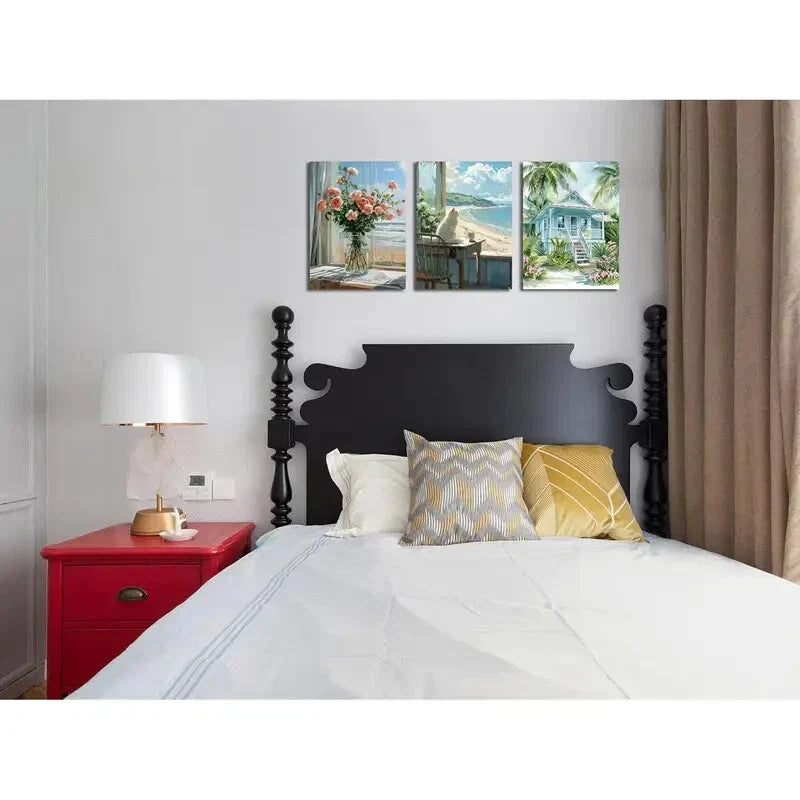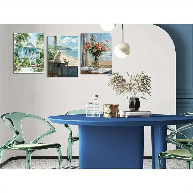 3pcs White Cat in Coconut Tropics Metal Print Ready to Hang Art