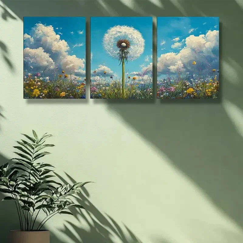 3pcs White dandelion Art Painting Wall Art Set Canvas Framed 40x60cm - High Quality Print 100% Australian Made Wall Canvas Ready to Hang