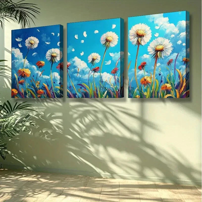 3pcs White dandelion Wall Art Set Canvas Framed 40x60cm -High Quality Print 100% Australian Made Wall Canvas Ready to Hang