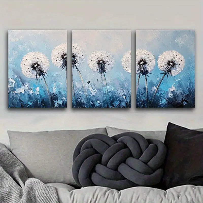3pcs White Dandelions Metal Print Ready to Hang Art
