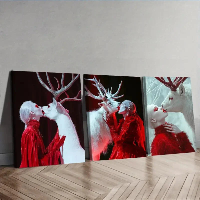 3pcs White Deer, girl (4) Wall Art Set Canvas Framed 40x60cm - High Quality Print 100% Australian Made Wall Canvas Ready to Hang