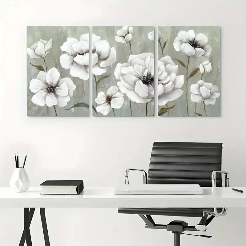 3pcs White Floral Elegant Beautiful Metal Print Ready to Hang Art