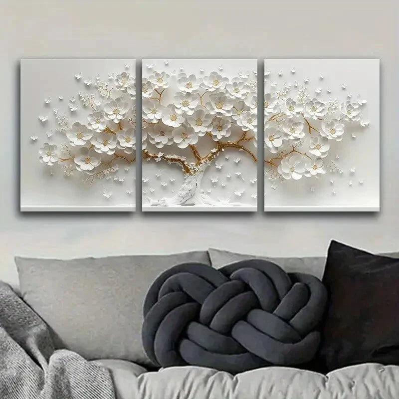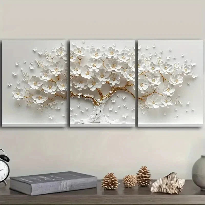 3pcs White Flower for Home Painting Metal Print Ready to Hang Art
