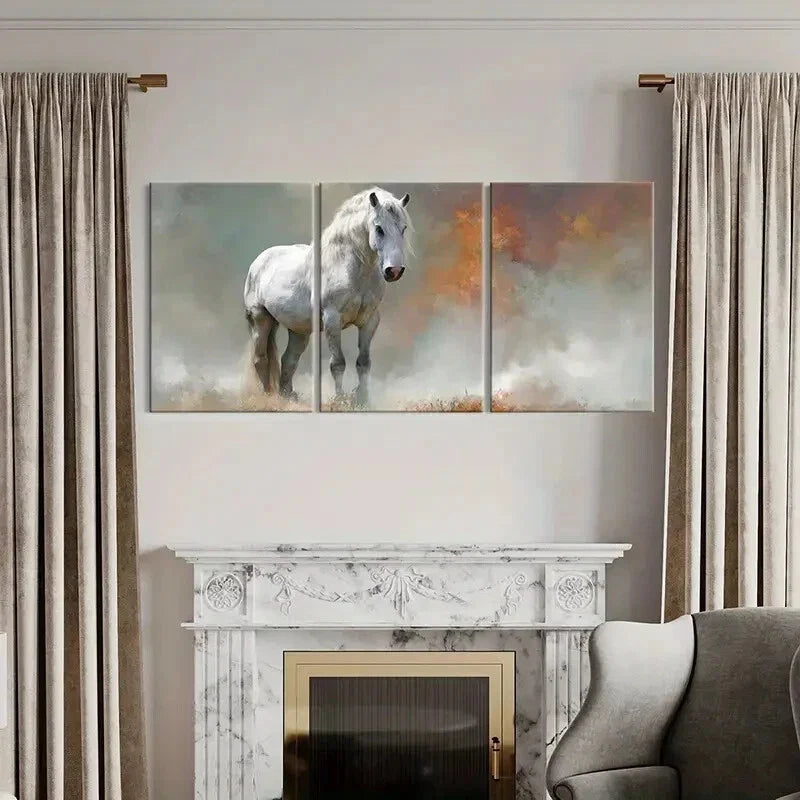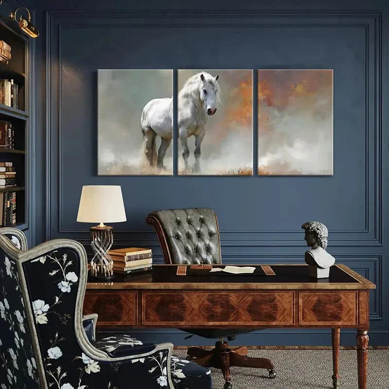 3pcs White Horse Art Abstract Painting Metal Print Ready to Hang Art