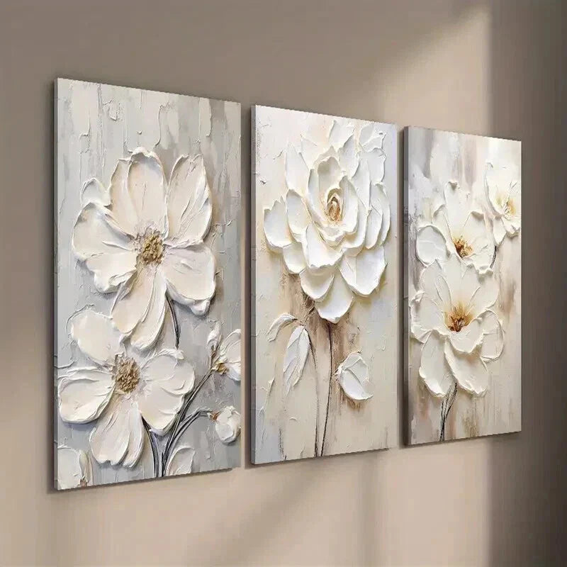 3pcs White Textured Flower Painting Wall Art Set Canvas Framed 40x60cm - High Quality Print 100% Australian Made Wall Canvas Ready to Hang