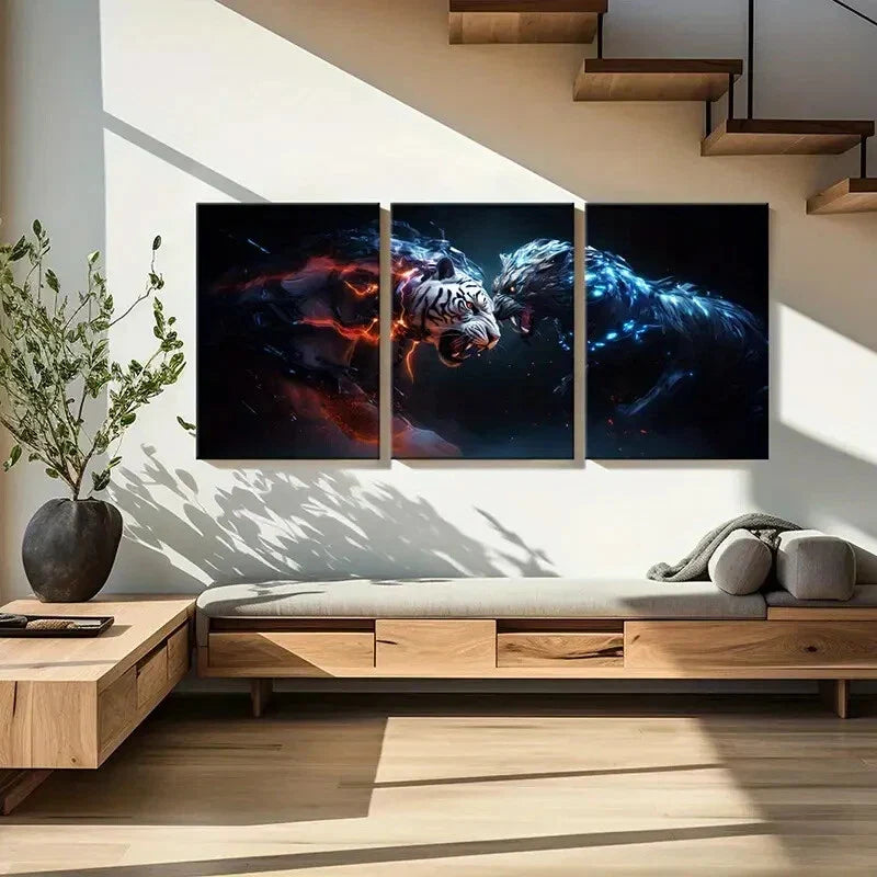 3pcs White Tiger Vs. Mechanical Tiger Metal Print Ready to Hang Art