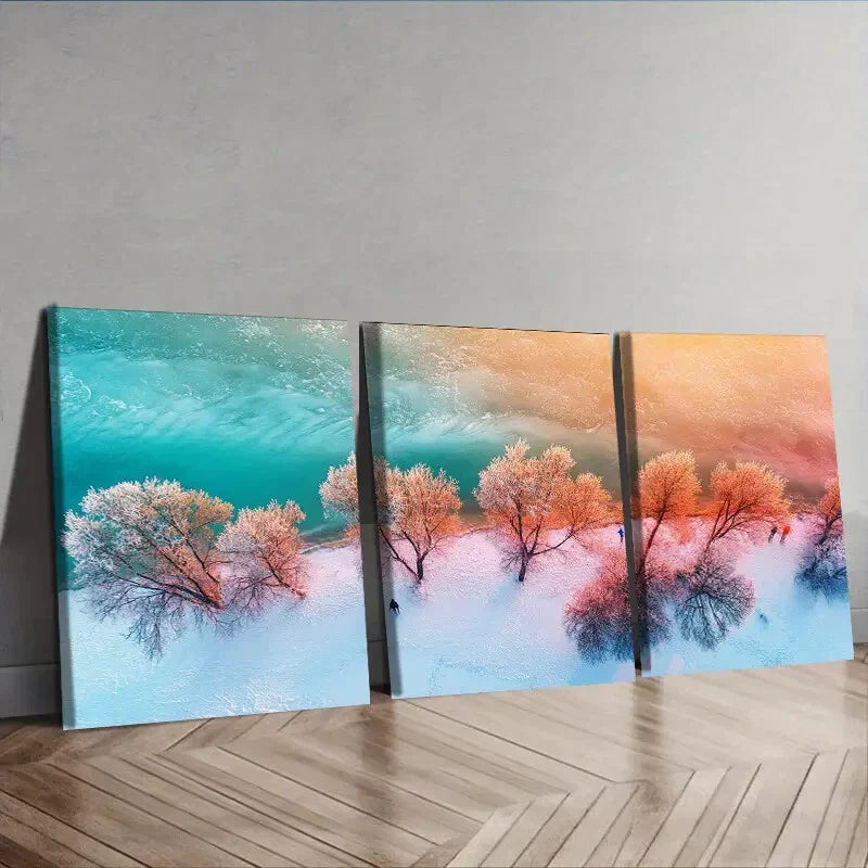 3pcs Winter Beach Triptych Wall Art Set Canvas Framed 40x60cm - High Quality Print 100% Australian Made Wall Canvas Ready to Hang