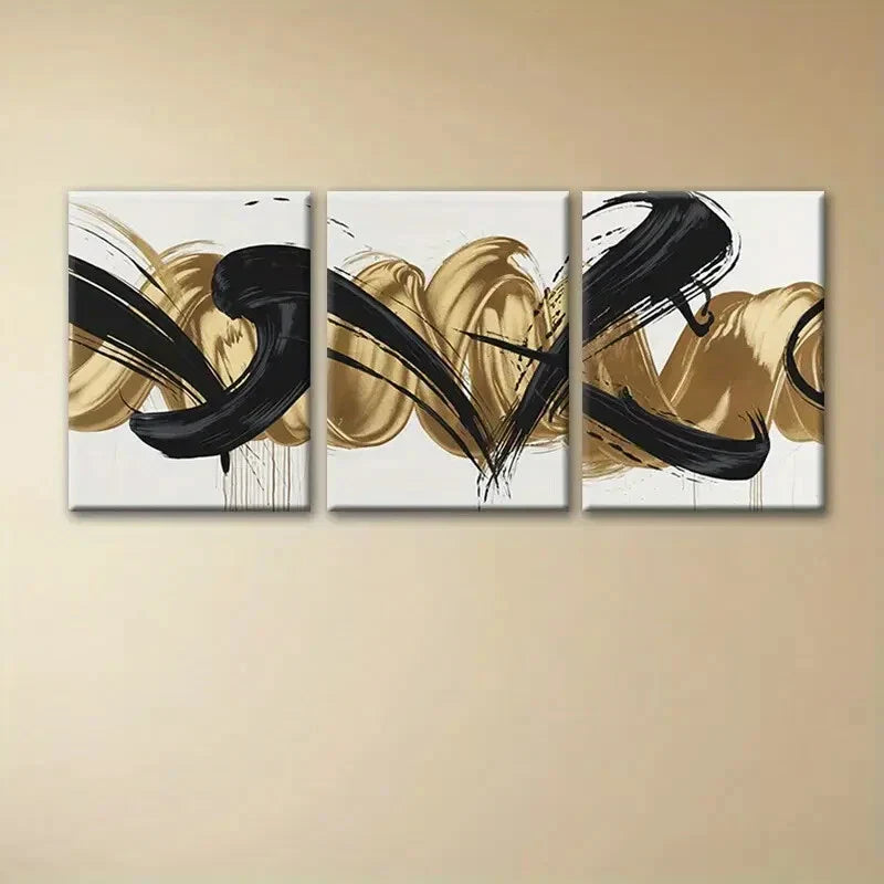 3pcs Contemporary Abstract Triptych with Vigorous Metal Print Ready to Hang Art
