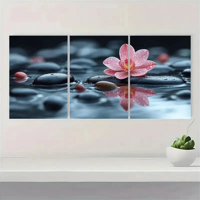 3pcs Zen Orchid Serene Water Reflection Pebble Metal Print Ready to Hang Art