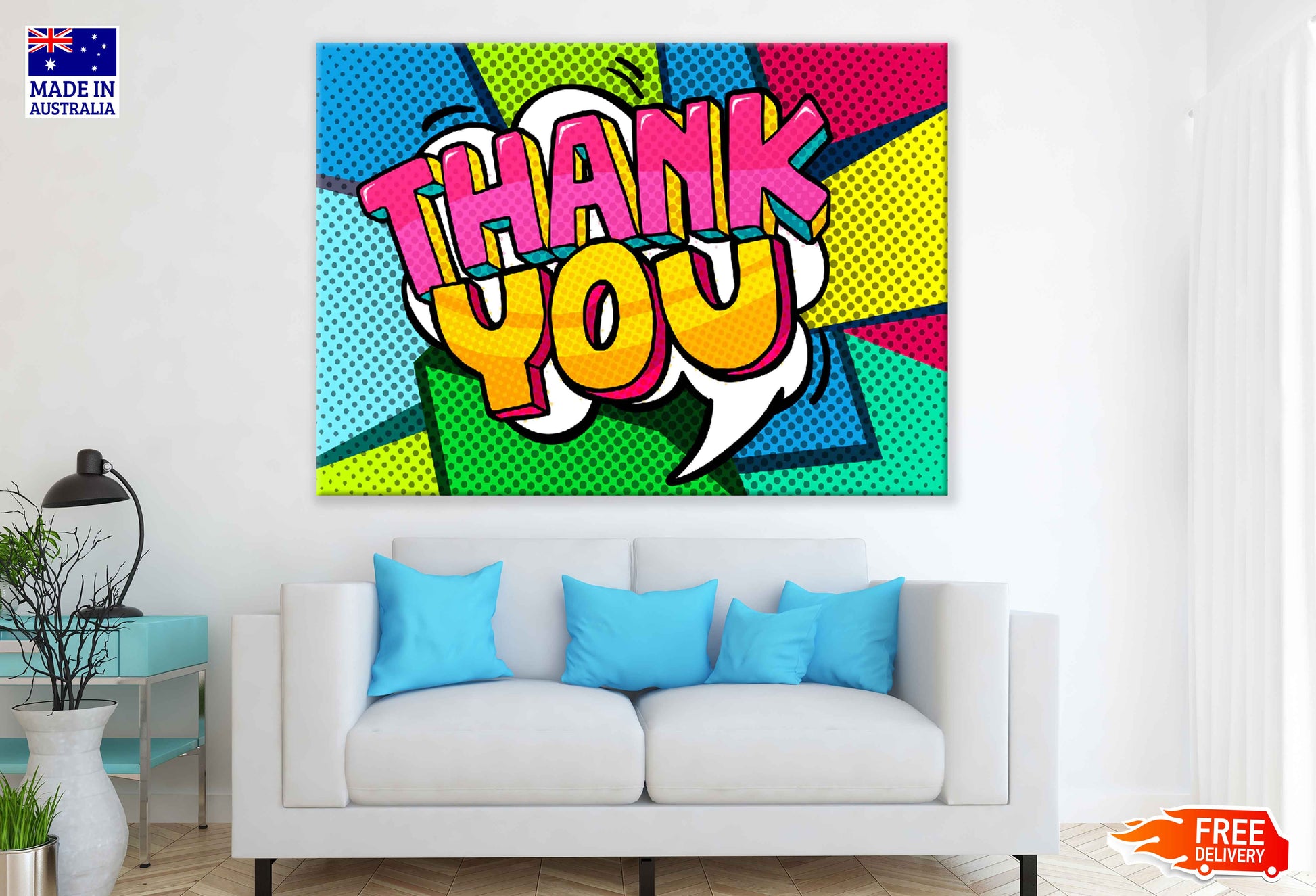 Colorful Thank You Quote Vector Design Pop Arts & Comic Poster Print 100% Australian Made Stretched Canvas Ready to Hang - 2151