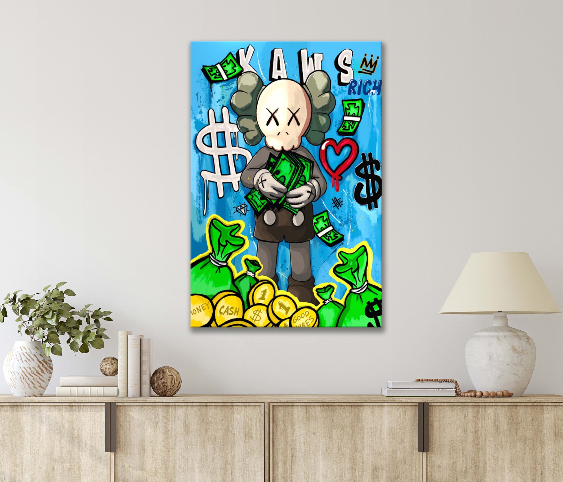 Graffiti Art of Cartoon Character Holding Money in Hands Print 100% Australian Made 40x60cm Stretched Canvas Ready to Hang