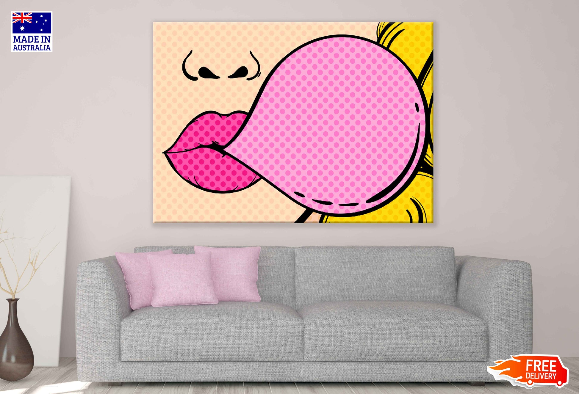 Girl & Bubble Gum Illustration Pop Arts & Comic Poster Print 100% Australian Made Stretched Canvas Ready to Hang - 2135
