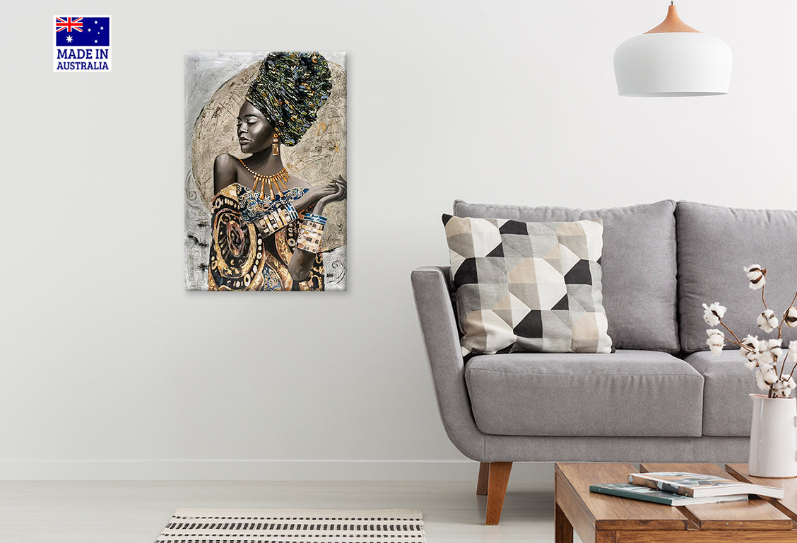 Painting Of a Woman with a Turban Print 100% Australian Made 40x60cm Stretched Canvas Ready to Hang