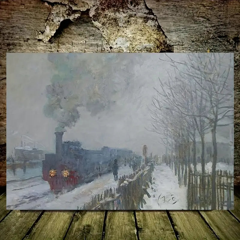 Vintage French Countryside Train in Snow Canvas Art Print 100% Australian Made 60x40cm Stretched Canvas Ready to Hang