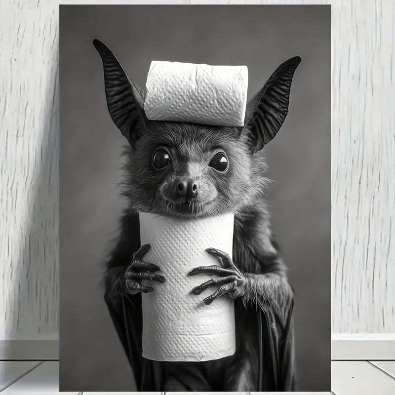 Whimsical Bat with Toilet Paper Print 100% Australian Made 40x60cm Stretched Canvas Ready to Hang