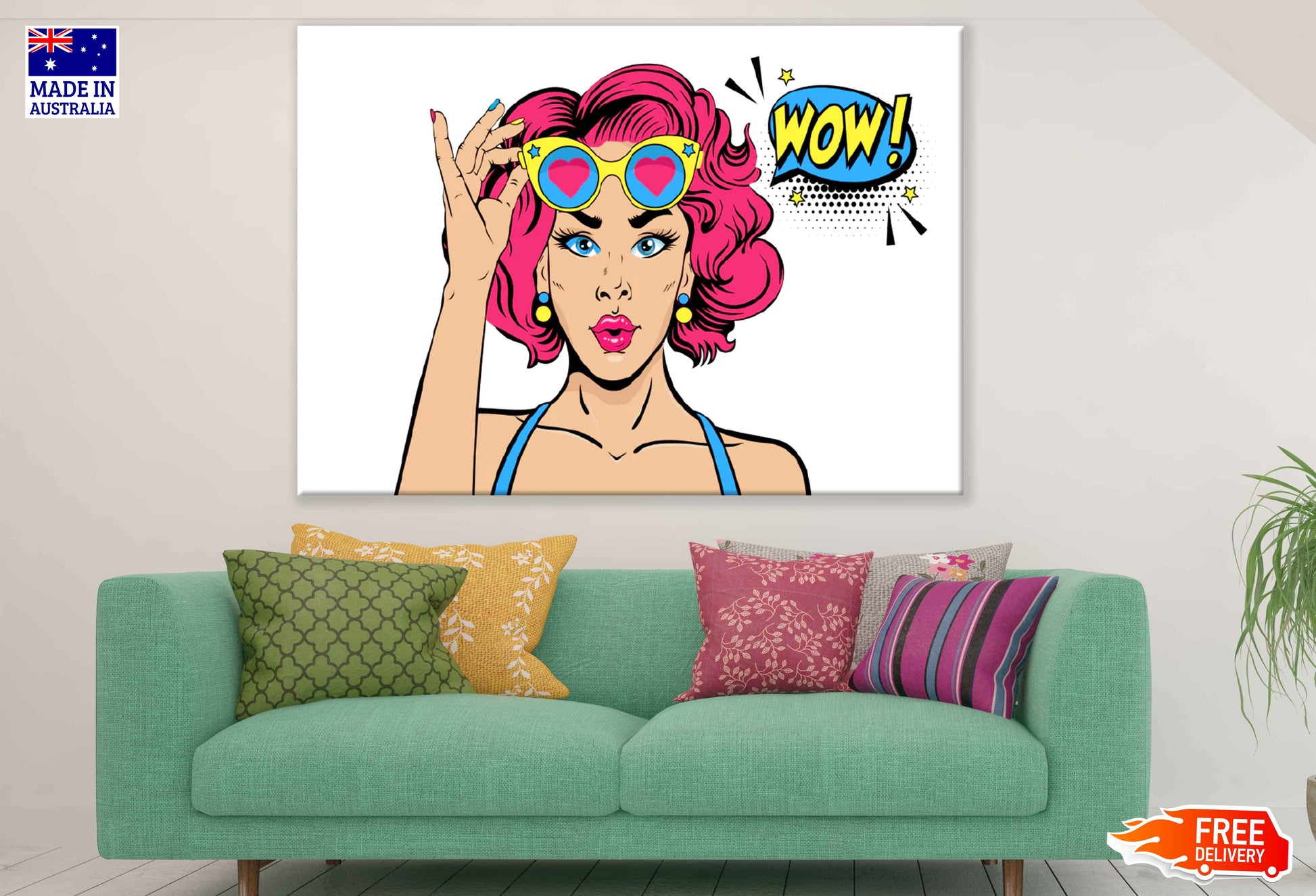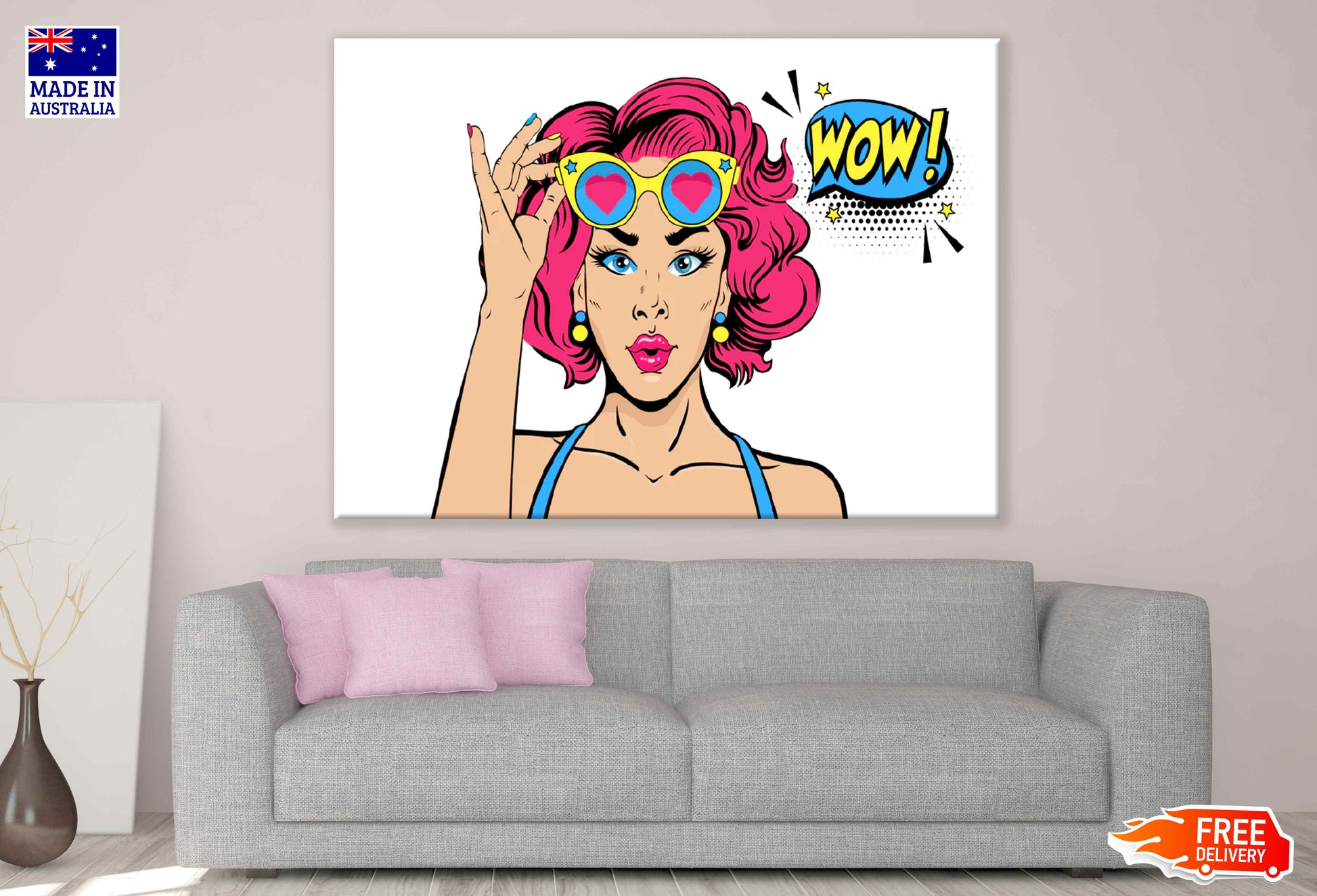 WOW Quote & Girl with Heart Shaped Glasses Illustration Pop Arts & Comic Poster Print 100% Australian Made Stretched Canvas Ready to Hang - 2171